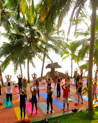 Join us for our annual pilgrimage to India during one of the most auspicious and healing times of the year to visit Kerala -the Fall Navaratri. From new moon towards full moon, we will follow the ritual cycle for rejuvenation as we enter the Vata season of Fall with greater grounding and self-care, from our spiritual home of Kerala overlooking the Indian Ocean on the Malabar Coast of Kerala India. Throughout our journey you will cultivate the rejuvenation practices of the “living flow asharam”. We balance the solar and lunar arts of healing yoga, meditation, prana vinyasa flows, kalarippayatu, and cultural programs so that we open to both the magic and peace of this sacred place.